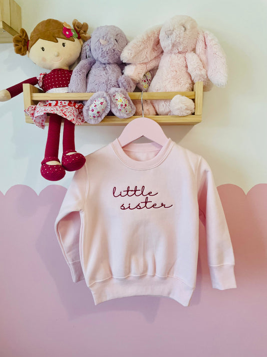 Big Sister/Little Sister Embroidered Sweatshirt Script font