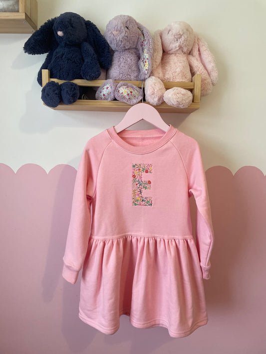 Personalised, Embroidered Floral Initial Sweater Dress (2 colours)